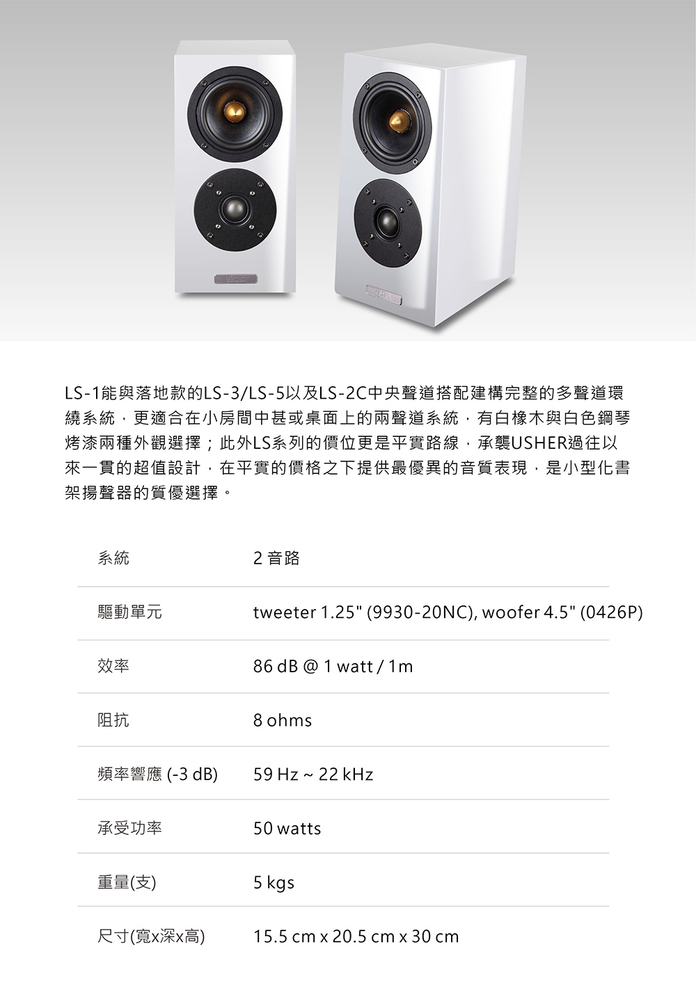 USHER LS-1 書架喇叭 & MP-60N 藍牙擴大機 , 二聲道組合